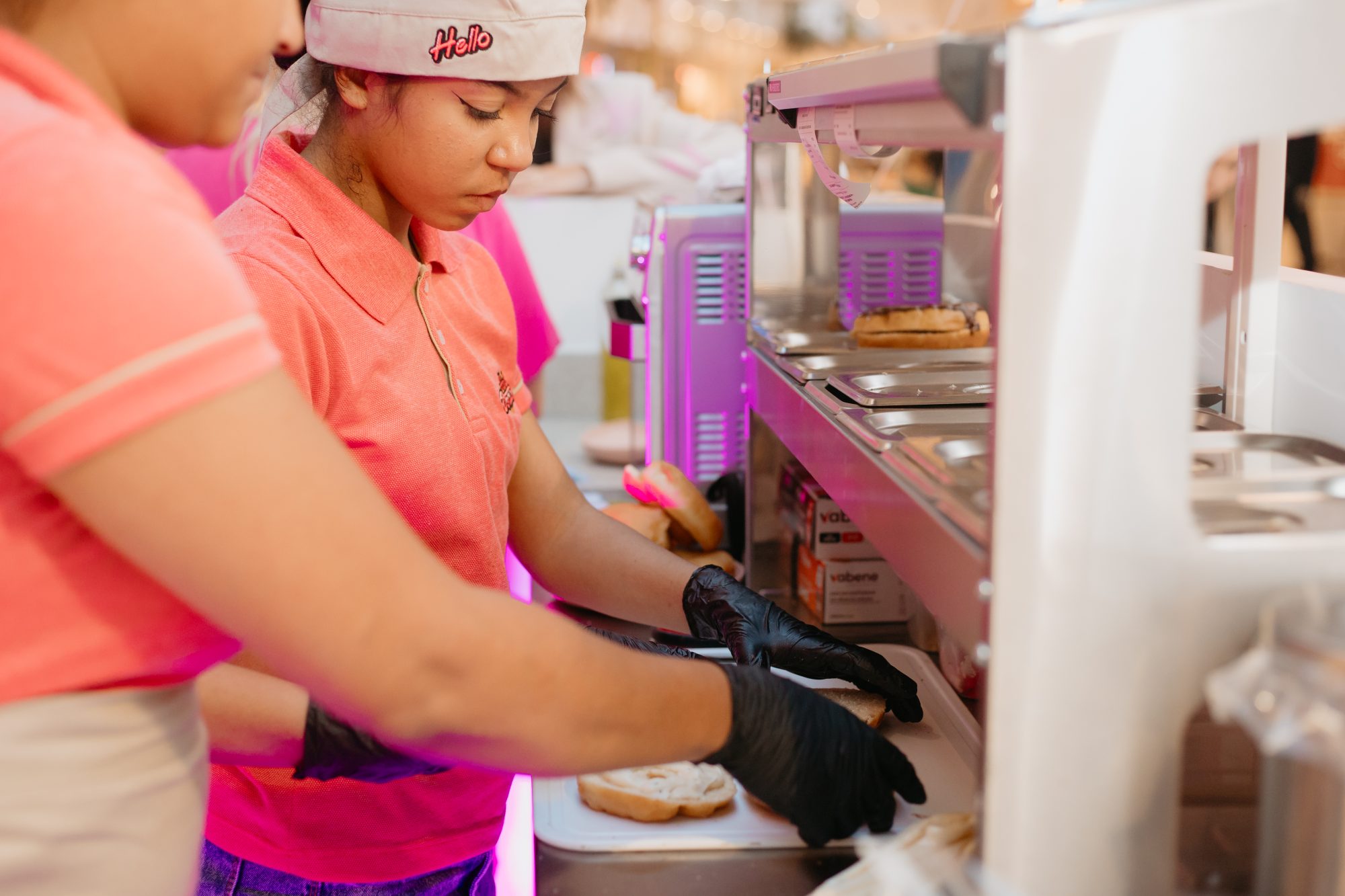 No dia 23 de julho, o Catuaí Shopping Cascavel ganhou um novo ponto doce e rosa: o primeiro quiosque da franquia Hello Donuts na cidade, com cheirinho de donut recém-saído do forno e aquele clima que mistura alegria com nostalgia. E, para tornar esse momento ainda mais especial, a inauguração contou com a participação da nossa equipe de eventos, que adicionou uma pitada de criatividade à produção do lançamento.